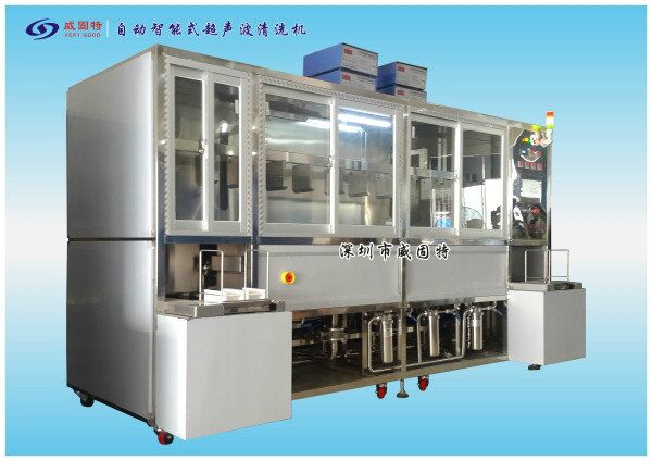 設備共有5個功能槽,配置有拋動系統、循環過濾系統、自動恒溫系統、定時系統、自動智能式機械手、熱風烘干系統等。設備采用環保型水溶劑洗滌、純水漂洗