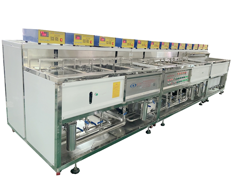 生化濾光片超聲波清洗機VGT-1609FP為生化濾光片超聲波清洗機,設備共有16個功能槽,配置有環保液處理系統、循環過濾系統、自動恒溫系統、拋動系統、超聲波清洗系統、抽風裝置、IPA漂洗系統、IPA烘干系統等。