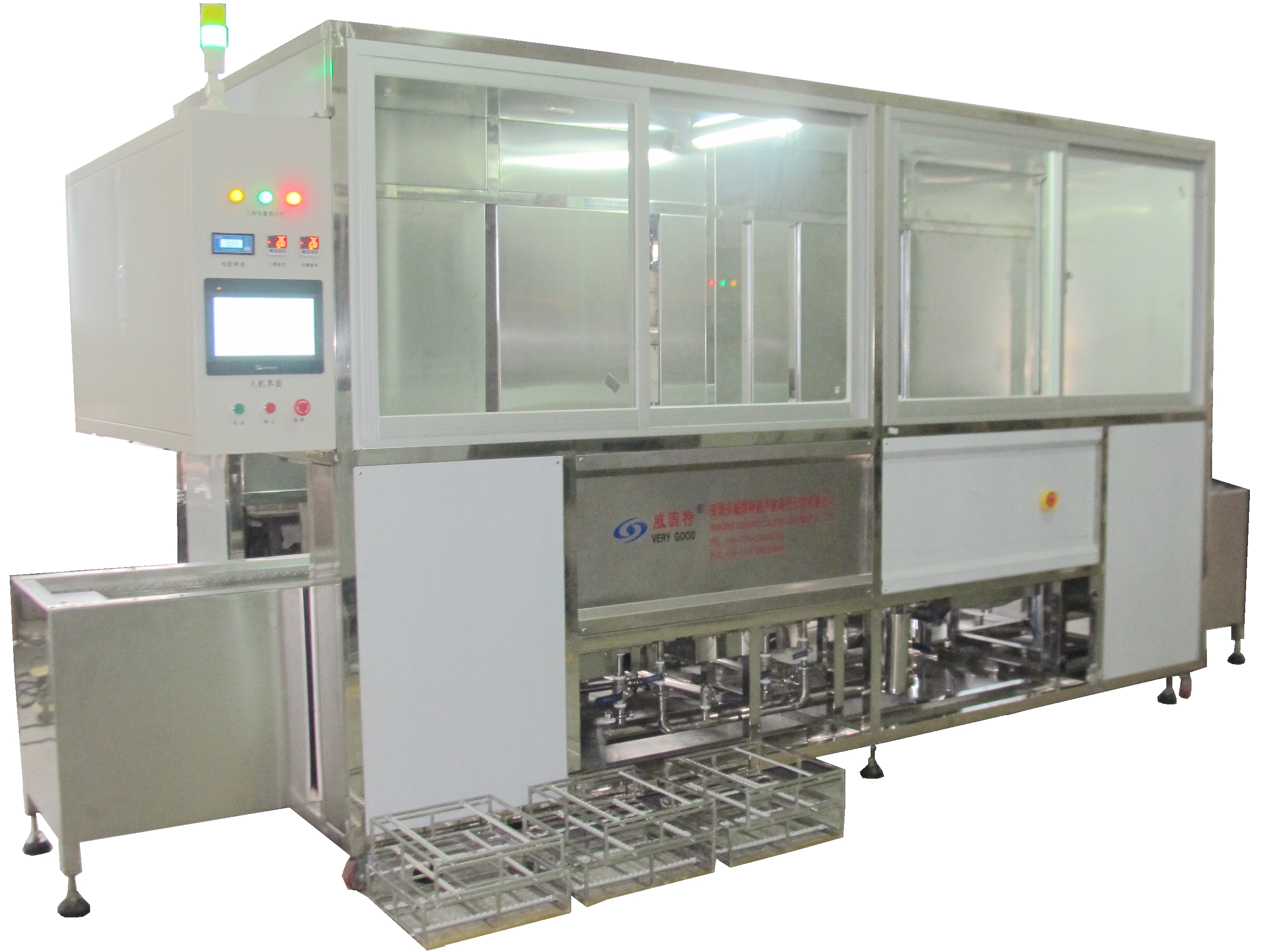 VGT-907FHA平行平晶光學超聲波清洗機VGT-907FHA型超聲波清洗機是威固特專為光學行業設計的超聲波清洗設備。整個工藝流程使用PLC編程控制,可根據清洗工藝要求,靈活設置動作參數。
