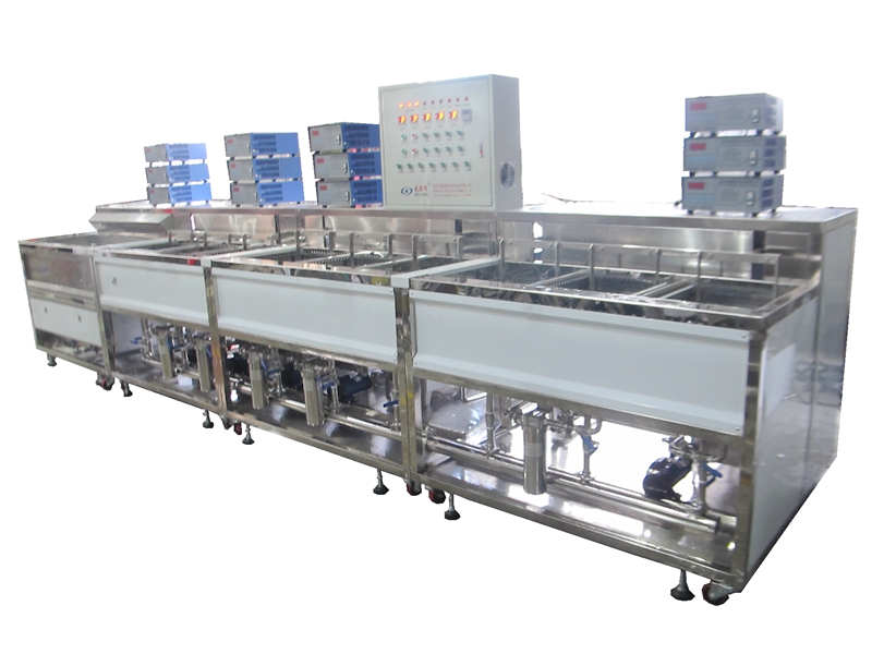 該清洗機主要由超聲波發生器、換能器、清洗槽、儲液槽、循環過濾系統、自動恒溫加熱系統、拋動系統、抽氣罩、冷水機、機架、電控柜等組成。