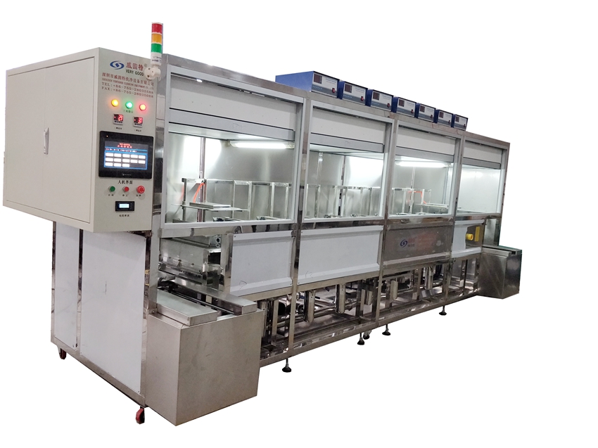 威固特體感觸控濾光片超聲波清洗機威固特體感觸控濾光片超聲波清洗機主要由超聲波發(fā)生器、換能器、清洗槽、儲液槽、循環(huán)過濾系統(tǒng)、自動恒溫加熱系統(tǒng)、拋動系統(tǒng)、抽氣罩、冷水機、機架、電控柜等組成。