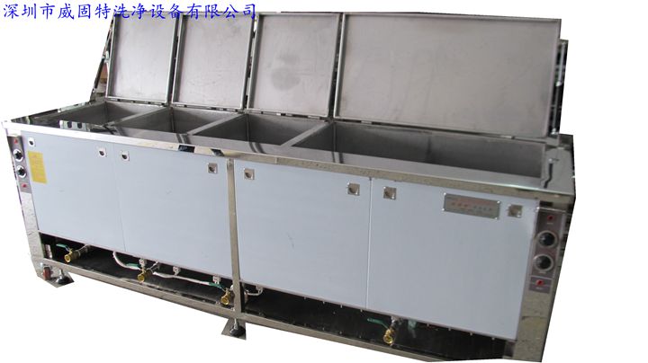 威固特4018F手動(dòng)膠塞超聲波清洗機(jī)威固特4018F手動(dòng)膠塞超聲波清洗機(jī)的清洗過程是由人員控制的,設(shè)備清洗主線由1個(gè)超聲波洗劑槽、1個(gè)超聲波純水漂洗槽、1個(gè)鼓泡漂洗槽、1個(gè)離心熱風(fēng)烘干槽組成的。