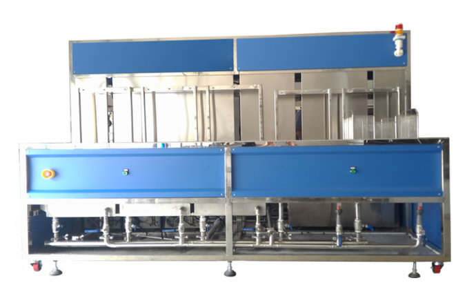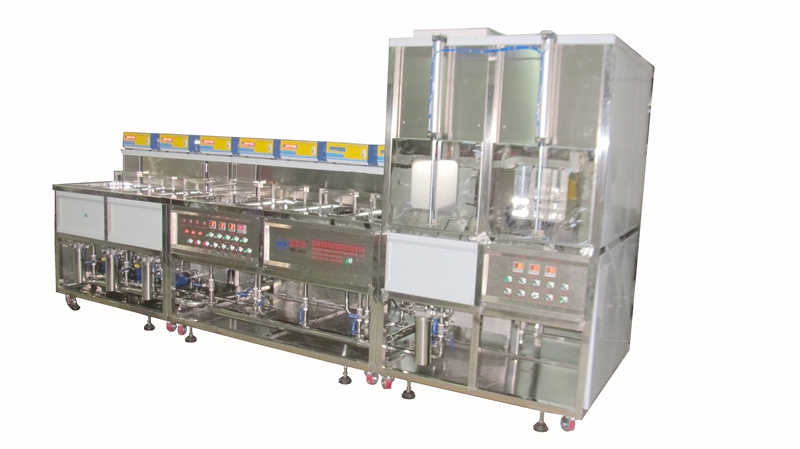 VGT-9140S九槽手動(dòng)式超聲波清洗機(jī)該清洗機(jī)是 9 個(gè)由不銹鋼材質(zhì)制作的洗劑超聲槽、強(qiáng)堿超聲槽、市水/回用純水超聲槽、純水超聲槽等組成的一條連續(xù)工作的由清洗的裝置。